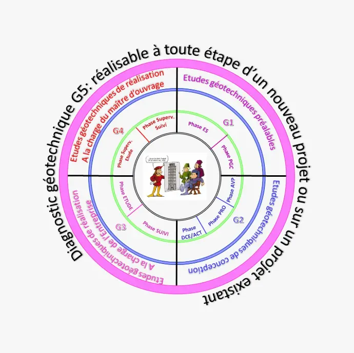 | Études G1 à G5, stabilité, fondations, terrassements. |